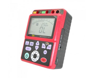 Мегаомметр цифровой ПрофКиП Е6-37 является одним из лучших в своей ценовой категории прибором. Мегаомметр ПрофКиП Е6-37 позволяет производить измерения сопротивления изоляции проводки и различных электротехнических устройств, источников питания, трансформаторов и генераторов. Измеритель сопротивления изоляции может использоваться в мастерских по ремонту электрических устройств. Мегаомметр ПрофКиП Е6-37 производит измерение сопротивления в пределах от 0 до 1000 ГОм, используя для этой цели 5 режимов с номинальным напряжением 250 В /500 В /1000 В /2500 В /5000 В. Измеритель сопротивления изоляции имеет возможность калибровки.