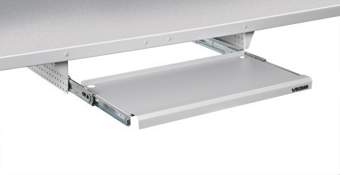 Подставка под клавиатуру снабжена механизмом выдвижения, обеспечивающим легкое скольжение. Материал подставки – сталь, покрытая порошковой кра ской тёмно-серого (RAL 7012) или светло-серого (RAL 7035) цвета. Подходит для любого типа столов, может устанавливаться на все рабочие места, где имеется свободное пространство под столешницей шириной более 616 мм и глубиной более 383 мм.