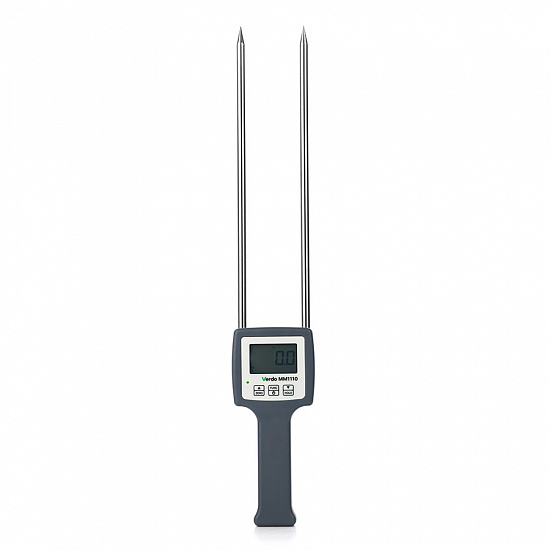 Влагомер бумажных материалов VERDO MM1110 предназначен для измерения относительной влажности различных видов бумажных материалов: рулонная бумага, листовая бумага в пачках, бумажная пыль, макулатура. В приборе реализован кондуктометрический метод измерения с автоматической температурной компенсацией. Также во влагомере предусмотрены функции калибровки (установки) нуля и корректировки показаний. Влагомер VERDO MM1110 имеет эргономичный корпус и оснащен большим ЖК-дисплеем с посдветкой для удобного считывания показаний. Питание влагомера осуществляется при помощи четырех батарей типа ААА.